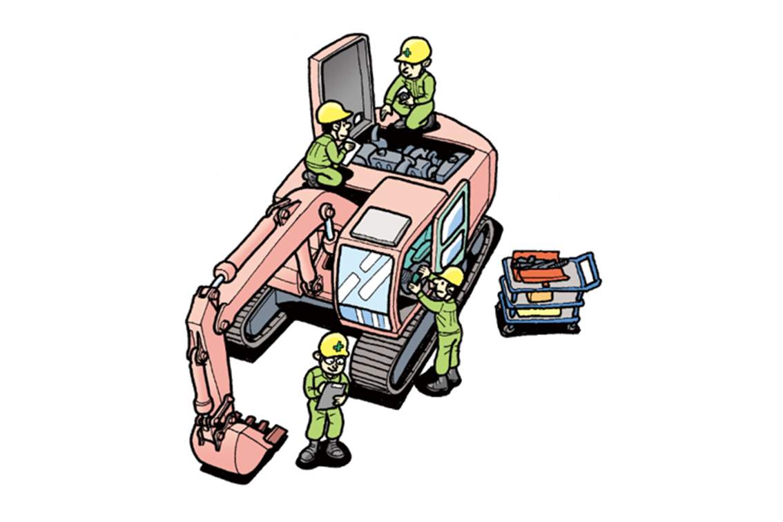 また、機械修理を原点とする当社は、コマツの指定整備工場として認証を受けており、長年にわたる卓越した技術で、整備・修理のサービスを通じてお客様の車両の安全性と経済性をサポートしています。