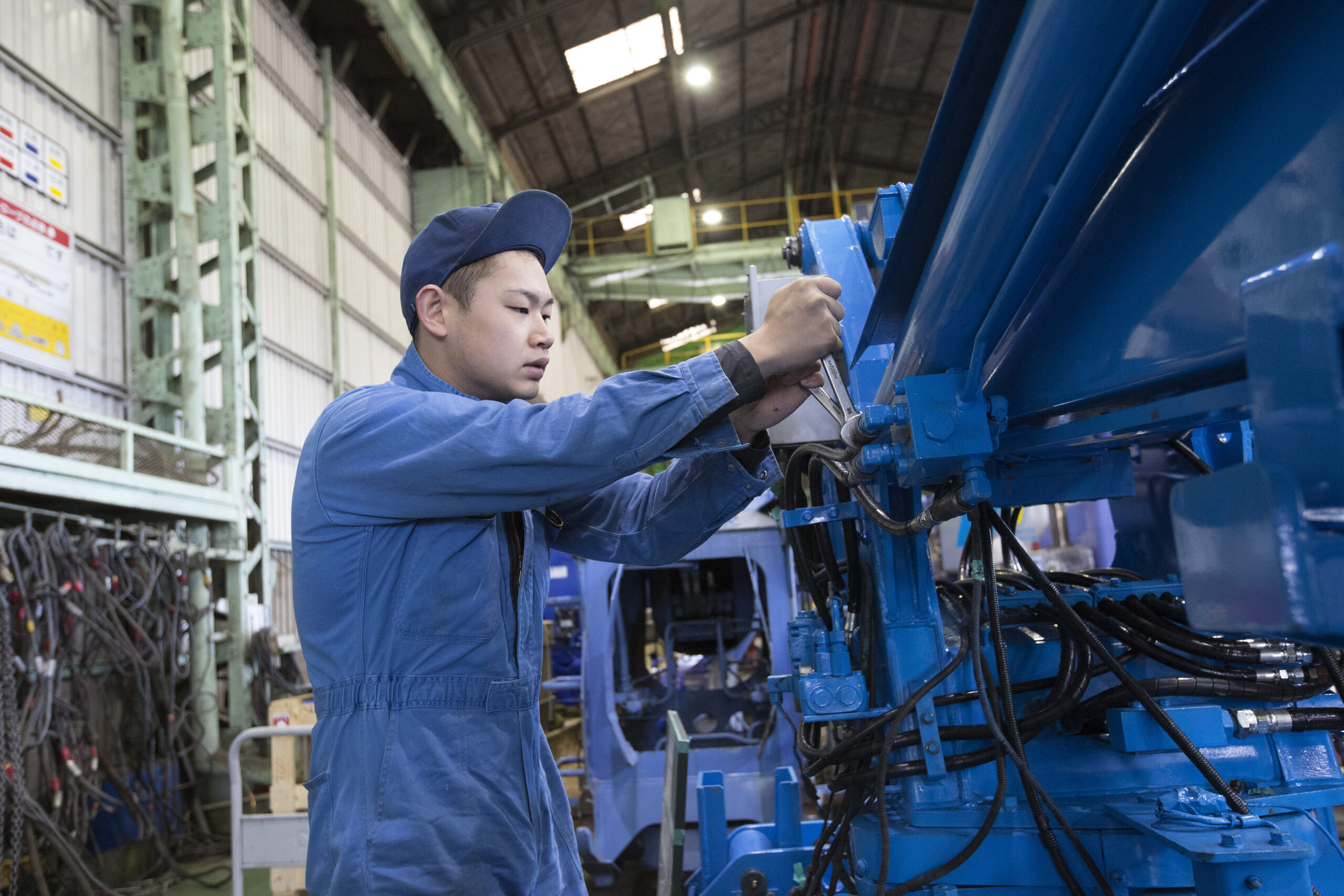 また、機械修理を原点とする当社は、タダノの指定整サービス工場として認証を受けており、長年にわたる卓越した技術で、整備・修理のサービスを通じてお客様の車両の安全性と経済性をサポートしています。